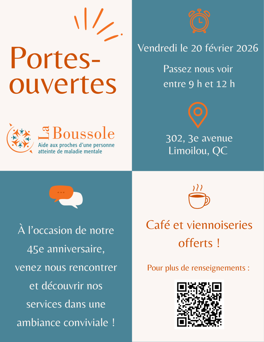À l’occasion de son 45e anniversaire, La Boussole est fière de vous accueillir pour une première activité portes-ouvertes!